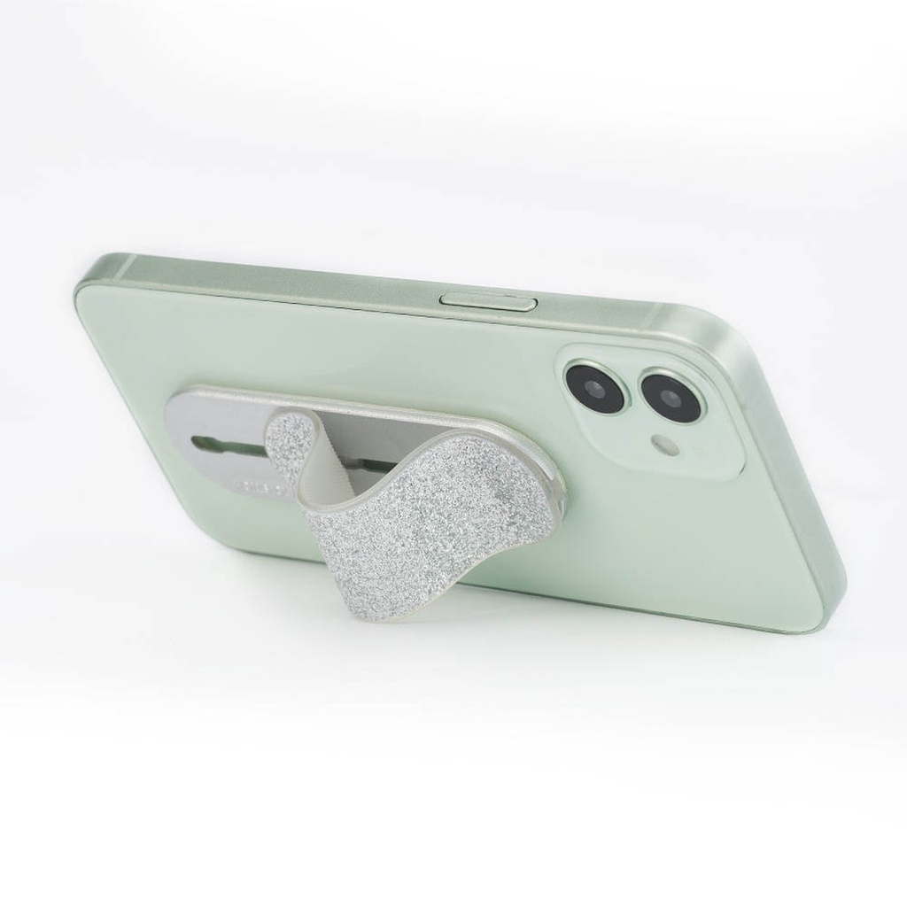 La forme du MOMO STICK rappelle une petite lime à ongles que vous pouvez coller à votre téléphone . Le produit est fabriqué en matériau caoutchouteux de haute qualité et se compose de deux couches. Faire glisser la couche supérieure crée un espace pour passer votre doigt: utile lorsque vous prenez des selfies, car cela offre une adhérence. Vous pouvez également utiliser le MOMO STICK comme support pour placer votre téléphone portable horizontalement sur la table, par exemple pour regarder des vidéos. Une fois plié, il ne fait que quatre millimètres d'épaisseur et le design se fond parfaitement avec celui de votre smartphone
